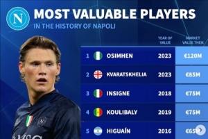 24体育直播:2025年10月28日讯 德国转会市场统计了那不勒斯队史的身价前10球员,奥斯梅恩位列第一。