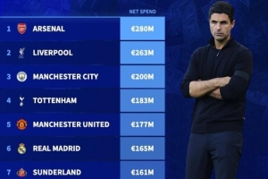 24体育直播:2025年2月4日讯 “转会市场网”统计了本赛季到目前为止,转会净支出最高的十家俱乐部,英超6队在列并占据前5名(单位:欧元;部分联赛转会窗尚未关闭)。