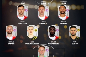 24体育直播:2025年10月18日讯 本轮德甲将上演焦点对决拜仁对阵多特,德甲官方也通过球迷票选评选出双方最佳11人阵容,其中凯恩领衔拜仁9人在列,具体如下: