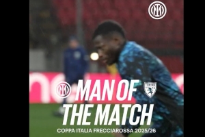 24体育直播:2025年2月6日讯 意杯1/4决赛,国米2-1击败都灵,据赛后国米官方消息,伊夏卡·卡玛特当选此役队内最佳球员。