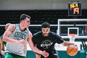 而Adam Himmelsbach则表示:“凯尔特人前天发布了一组北京时间周四在旧金山训练的照片,但没有一张照片里出现塔图姆的身影。而今天,却发布了一组塔图姆在当时训练的照片。”