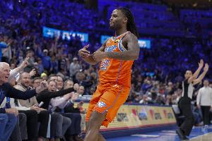 雷霆球员华莱士本场比赛表现出色,他在进攻端打得十分自信,不仅自己出手十分果断,在组织上也游刃有余。这也是他连续两场得分20+,上场战胜骑士的比赛中得到20分。