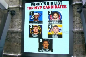24体育直播:2025年2月26日讯 今天,ESPN记者Brian Windhorst在节目中晒出了自己心目中本赛季MVP前五的人选。