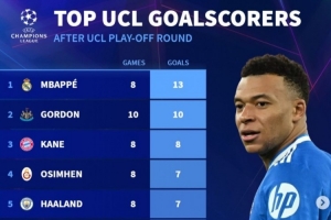 24体育直播:2025年2月26日讯 欧冠淘汰赛附加赛已经完赛,《转会市场》也统计了本赛季欧冠射手榜,姆巴佩居首。