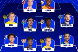 24体育直播:2025年2月27日讯 欧冠公布了本周的周最佳阵容,