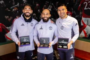 24体育直播:2025年2月28日讯 曼联官方晒出卡塞米罗、库尼亚、姆伯莫三人合照,赠送纪念奖牌,纪念三人在英超的里程碑时刻。