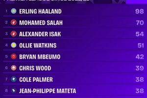 24体育直播:2025年11月3日讯 英超第10轮比赛,哈兰德梅开二度,帮助曼城主场3-1击败伯恩茅斯。Squawka统计了22-23赛季以来球员在英超的进球数量,哈兰德98球断层居首。