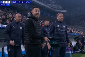 马赛主帅德泽尔比手拿IPAD愤怒的向裁判表示对手在进球前首球犯规,但是裁判依然认定进球有效。