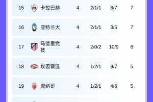 24体育直播:2025年11月6日讯 欧冠第4轮全部比赛结束,最新积分榜情况出炉。目前积分榜上,拜仁枪手国米全胜领跑!本菲卡阿贾克斯全败垫底。