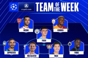 24体育直播:2025年11月7日讯 欧冠联赛阶段第4轮的比赛已全部结束,欧足联官方评选出了本轮欧冠的最佳阵容。