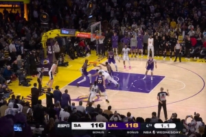 24体育直播:2025年11月7日讯 昨天一场NBA常规赛,湖人在主场以118-116击败马刺。今天,NBA官方公布了最后两分钟裁判报告。有一次误判。