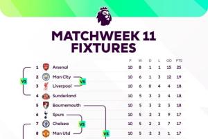 24体育直播:2025年11月07日讯 本周末将迎来英超第11轮的较量,赛前英超官方用一张图表清晰展示了本轮交手各队的名次对比。