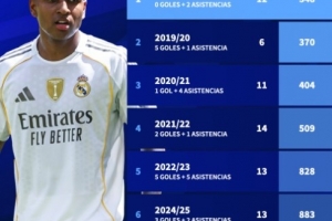 24体育直播:2025年11月8日讯 尽管皇马主帅阿隆索多次在新闻发布会上强调罗德里戈是球队阵中重要一员,但数据却显示了完全不同的情况。在进攻端,只有恩德里克和贡萨洛-加西亚比他出场时间更少。事实上,这是他加盟皇马以来前15场比赛出场时间最少的一个赛季。