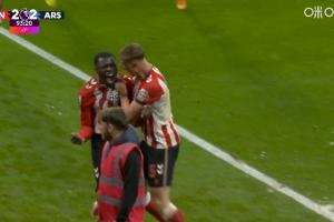 24体育直播:2025年11月09日讯 英超第11轮,阿森纳客战桑德兰。补时第94分钟,布罗比侧勾破门,拉亚出击未扑到,桑德兰2-2阿森纳!
