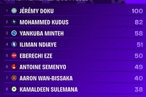 24体育直播:2025年11月10日讯 英超第11轮比赛,多库完成7次过人,打进1球,帮助曼城3-0击败利物浦。据Squawka统计,多库是2025年首位英超成功过人达到100次的球员。