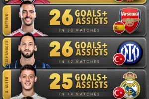 24体育直播:2025年11月10日讯 Score90统计了2025年五大联赛中场球员在俱乐部+国家队比赛中参与进球的数量,并列出榜单。