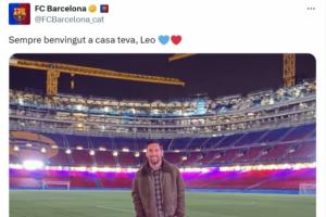 24体育直播:2025年11月10日讯 梅西ins晒照重返诺坎普两小时后,巴萨官方发文:欢迎你随时回家,莱奥。