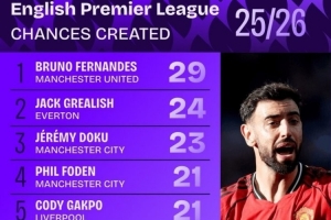 24体育直播:2025年11月11日讯 英超联赛已经进行了11轮,squakwa也统计了本赛季英超创造机会情况,B费力压格拉利什居首。