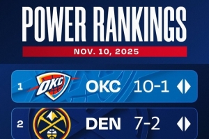 24体育直播:2025年11月11日讯 官方发布了最新一期球队实力榜,其中前两名没有变化,依旧是雷霆和掘金。而火箭升至了第三位,尼克斯也升到了第四位。