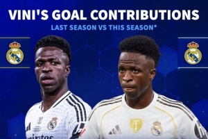 24体育直播:2025年11月11日讯 德国转会市场统计了维尼修斯上赛季和本赛季的数据,这位皇马前锋的效率有所下滑。