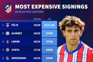 24体育直播:2025年11月12日讯 阿波罗体育资本斥资13亿欧元收购马竞俱乐部55%股份,并承诺未来几年再投资约13亿欧元,德国转会市场统计了马竞队史引援的费用,并列出最贵引援排名。