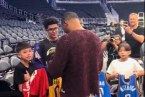 24体育直播:2025年10月20日讯 美媒昨日晒出视频,威少为小球迷们签名,签了雷霆与火箭的,唯独略过了湖人的。