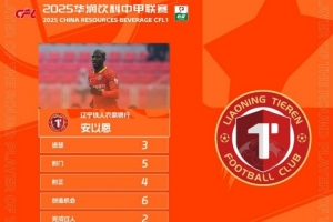 24体育直播:2025年11月12日讯 上演帽子戏法的辽宁铁人球员安以恩,当选为中甲联赛第30轮最佳球员。