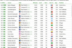 24体育直播:2025年11月12日讯 CIES足球天文台发布了最新报告,公布了全球100名球员应获得的最高年薪。这一统计模型考虑了过去一年中的比赛时间、比赛水平以及首发比例等因素,还包括球员的主要位置。在这份报告中,姆巴佩以应得2280万欧元(仅固定部分)年薪位居榜首。