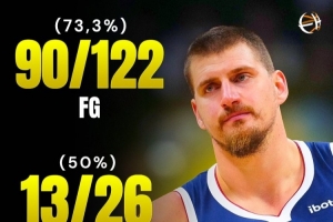 24体育直播:2025年11月13日讯 过去八场比赛,约基奇场均得到28.5分13.1篮板11.1助攻,命中率73.2%,三分命中率50%,罚球命中率85%。