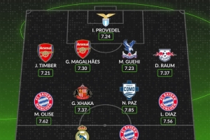 24体育直播:2025年11月13日讯 WhoScored根据球员在联赛中的场均评分,列出了本赛季至今五大联赛最佳阵容,姆巴佩、凯恩领衔。