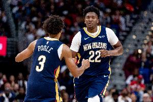 鹈鹕13号新秀中锋奎因大放异彩,获得重用,替补出战37分钟,18投12中,罚球3中2,砍下26分7板4助。