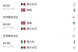 在与小组垫底球队摩尔多瓦的比赛中,挪威2场进16球丢1球收获15个净胜球,而意大利2场进4球丢0球只取得4个净胜球,拉开11个净胜球的差距。