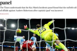 24体育直播:2025年11月14日讯 英媒《泰晤士报》报道,英超专家组已经裁定,上轮英超范戴克对曼城的进球应被判有效。