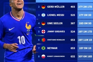 24体育直播:2025年11月15日讯 对阵乌克兰的世预赛,法国球星姆巴佩达成职业生涯400球里程碑。德国转会市场盘点了职业生涯400球俱乐部球员达成如此成就的场次和年龄,姆巴佩以26岁10个月24天成最年轻球员。
