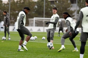 24体育直播:2025年11月24日讯 北京时间11月27日凌晨4:00,欧冠联赛阶段第5轮,皇马将客战奥林匹亚科斯。今日皇马官方晒出球队训练图,马斯坦托诺参加部分合练。
