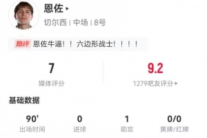 24体育直播:2025年11月26日讯 切尔西在本轮欧冠3-0完胜巴萨,恩佐本场数据如下: