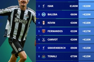 24体育直播:2025年10月17日讯 德转更新了英超球员身价,并盘点了本次身价涨幅最大的10名球员,具体如下(现身价,涨幅):