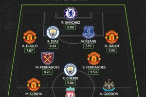 24体育直播:2025年12月9日讯 英超第15轮战罢,whoscored评选出本轮最佳阵容,埃基蒂克、库尼亚领衔锋线、谢尔基、B费坐镇中场。