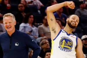 当戈登射中第十个三分球,达成了约基奇的三双时,库里毫无逻辑、极不合理的34尺超远射,120平。拖进加时。