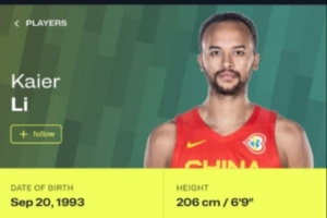 国际篮联资料显示 李凯尔所属国家队为中国男篮