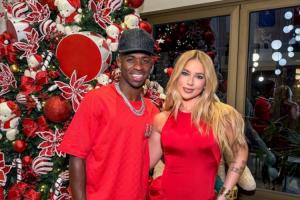 24体育直播:2025年12月25日讯 今天是西方传统节日圣诞节,维尼修斯的女友弗吉尼亚晒出了两人在圣诞树前的合照,并向粉丝球迷送出圣诞祝福,维尼修斯本人也转发了合照。