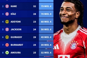 24体育直播:2025年10月25日讯 德国转会市场盘点了德甲新赛季进攻球员身价排行,奥利塞以1.3亿欧元居首,凯恩7500万欧元位居次席。