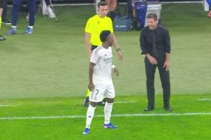 24体育直播:2025年1月9日讯 在今天凌晨皇马击败马竞的西班牙超级杯半决赛中,维尼修斯和西蒙尼因皇马球员换人一事发生争执,双方发生口角,最终两人各领一张黄牌。