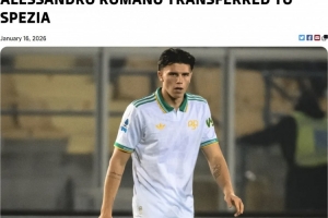 24体育直播:2025年1月17日讯 罗马官方宣布,青训中场球员亚利桑德罗·罗马诺被租借到意乙球队斯佩齐亚。